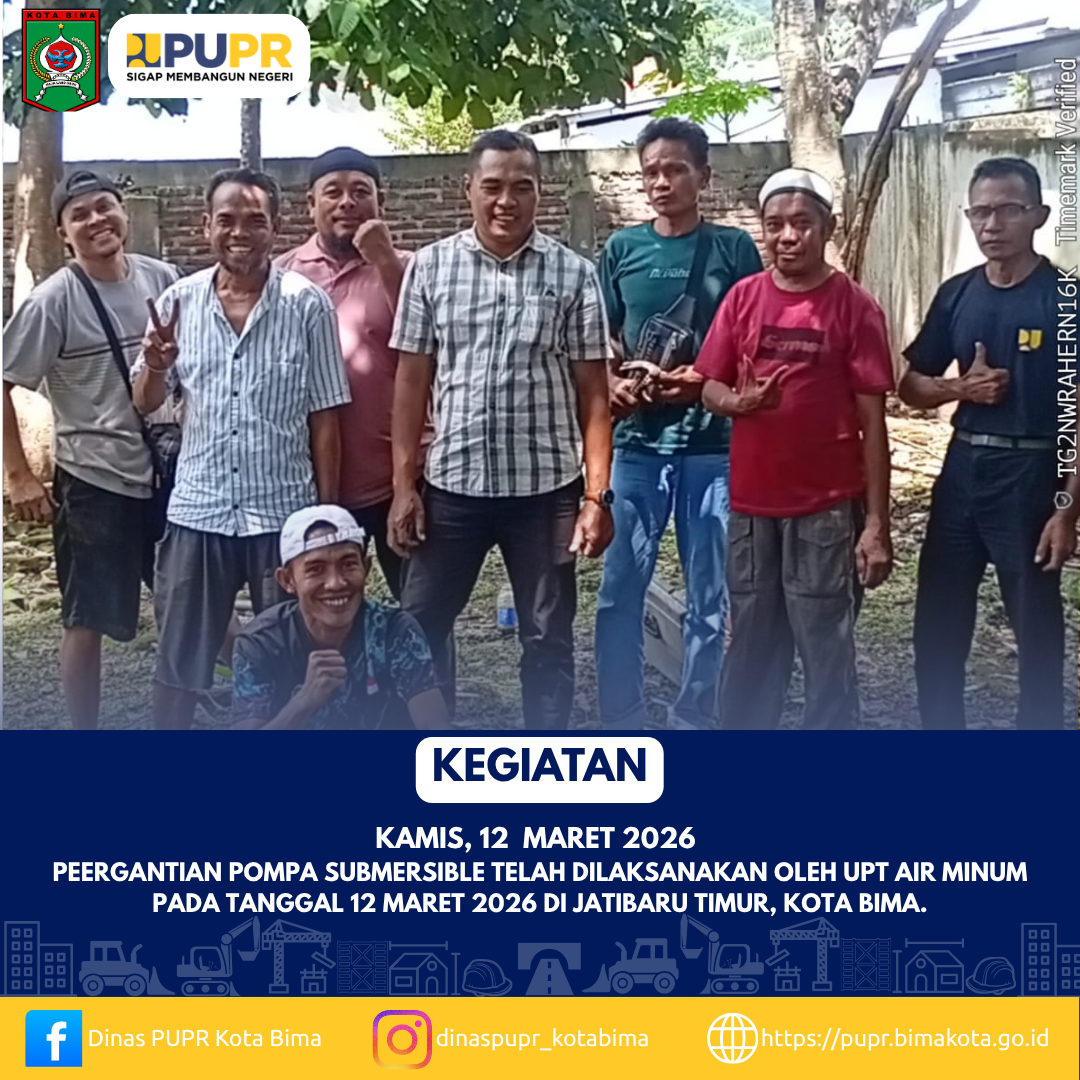 Kegiatan Pergantian Pompa Submersible oleh UPT Air Minum Dinas PUPR Kota Bima